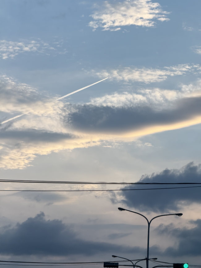 而遠方一架飛機劃過天際,留下一道白色的痕跡,那一刻心有一絲感動。