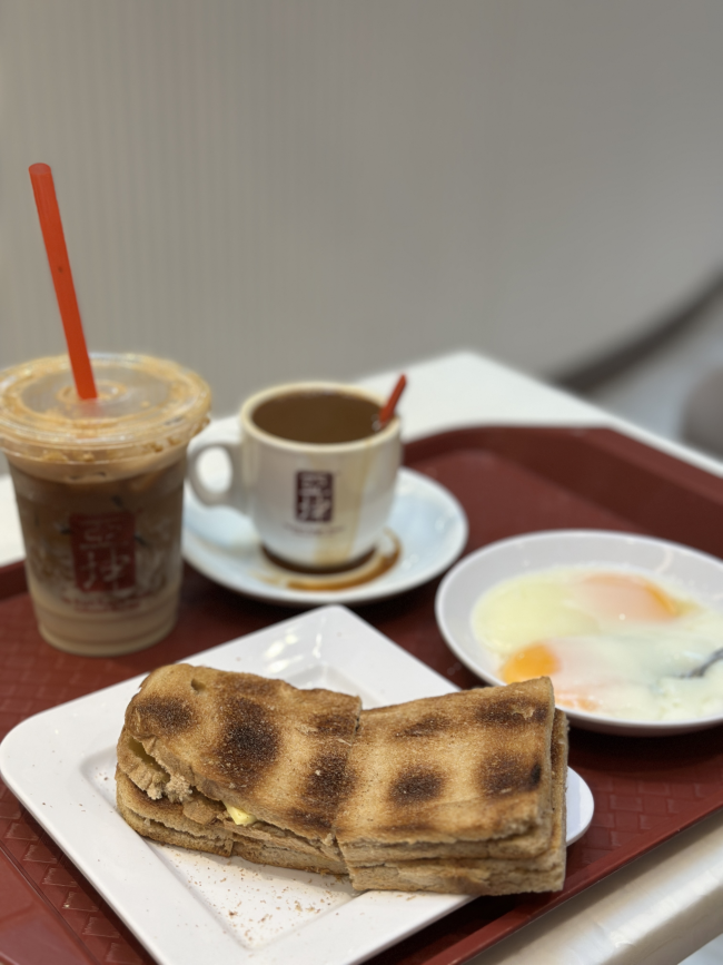 裡面有奶油塊加咖椰醬 配上半熟蛋 淋上醬油灑上胡椒