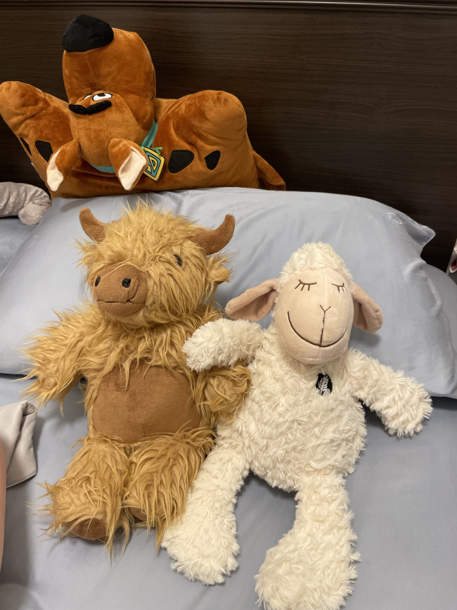 這是我在紐西蘭帶回來的氂牛,跟羊羊 我在澳洲的時候每去一個地方就會帶一隻娃娃回來,我超愛娃娃😅 最喜歡的是羊羊她叫睏睏,她是小寶寶抱著睡覺得,毛很柔軟,是紐西蘭當底製造的唷