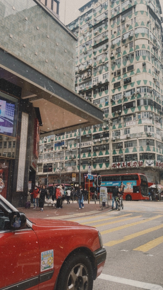 香港街景🇭🇰 街道兩旁常見高樓大廈外,店家還保有傳統霓虹燈招牌,展現密集都市風貌並帶著濃濃的港味風情