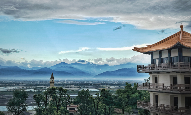 這是我第一次去高雄的佛光山,雖然是下午打吧平原上飄著薄薄的雲霧,遠處的山層層疊疊,也有著朦朧的霧氣